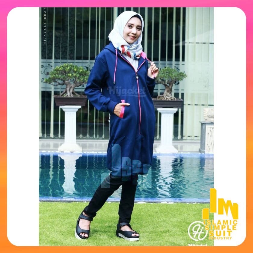 Jaket Hijab Hijaber Keren Hijacket Hijabers Basic 20 Navy X Pink Simple Bahan Premium Fleece